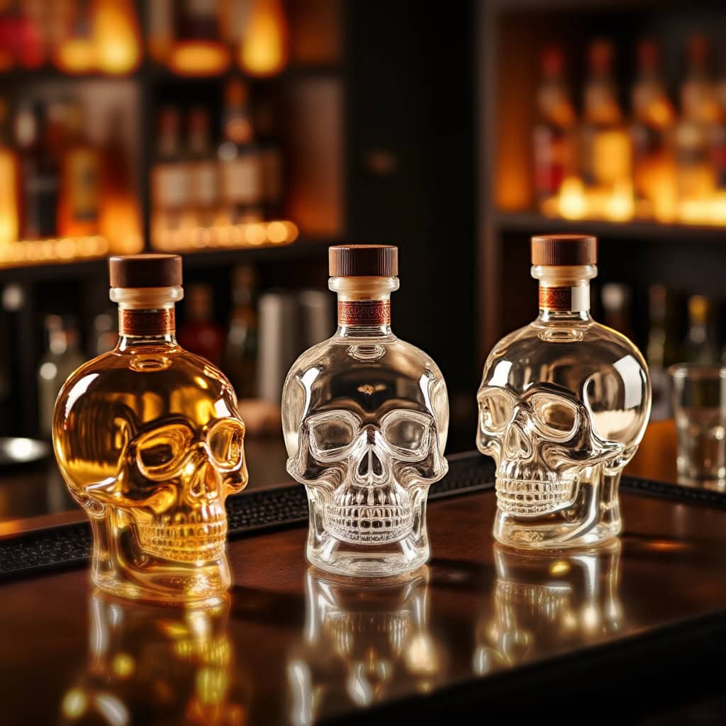 - Hình dạng và họa tiết độc đáo: Các thương hiệu như Crystal Head Vodka, với chai hình đầu lâu mang tính biểu tượng, sử dụng hình khối nổi bật để tạo nên bản sắc hình ảnh mạnh mẽ. Các công ty khác có thể kết hợp các chi tiết tinh tế như chai rượu khắc có logo hoặc họa tiết trang trí.